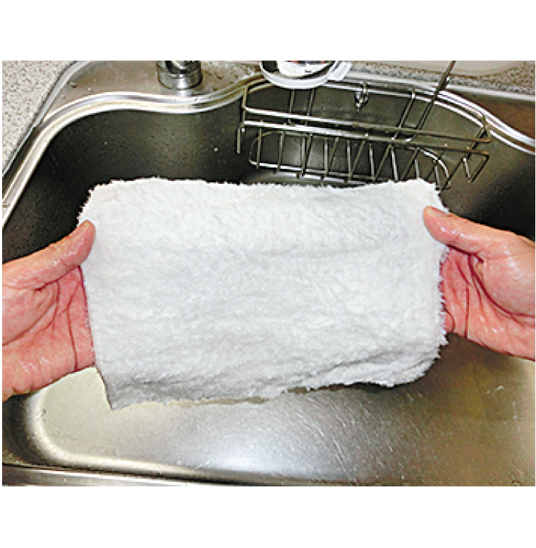 水で濡らして、油汚れを一拭き。毛細効果で油汚れをしっかり絡め取ります。