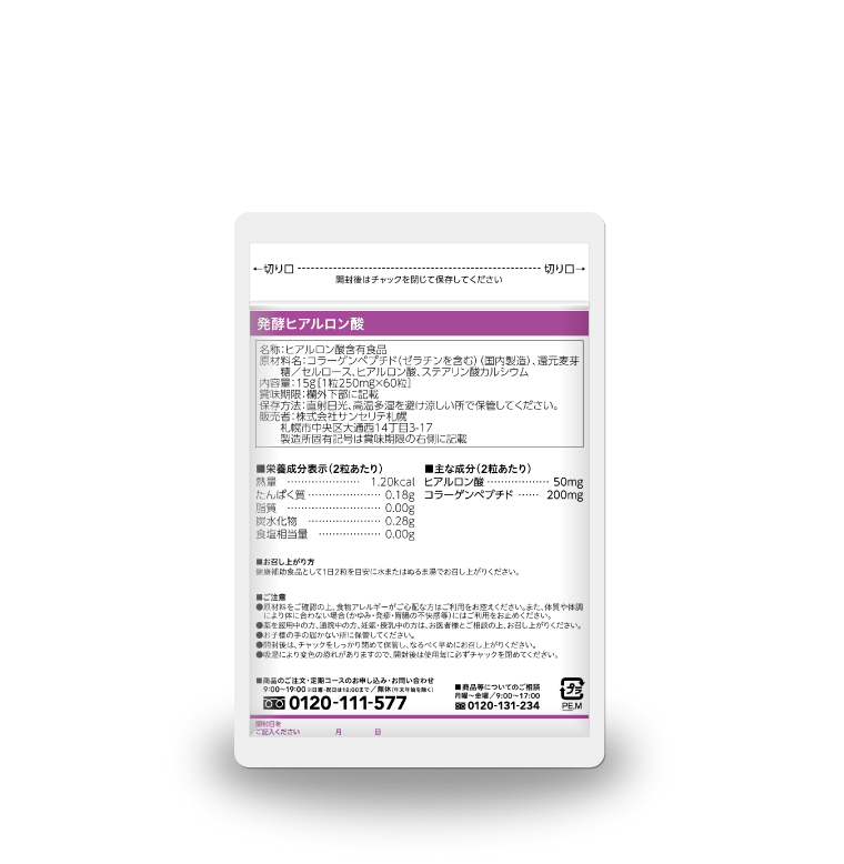 高純度の発酵ヒアルロン酸に、吸収性に優れたペプチドタイプのコラーゲンを加え、健康と美容を手軽にサポートし、うるおう毎日を応援します。