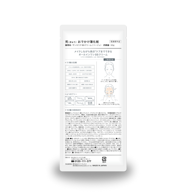 おでかけ前にサッとひと塗り!シミを隠す+防ぐ!※ ※メラニンの生成を抑え、日焼けによるシミ・そばかすを防ぐ。 おでかけ薄化粧[医薬部外品]