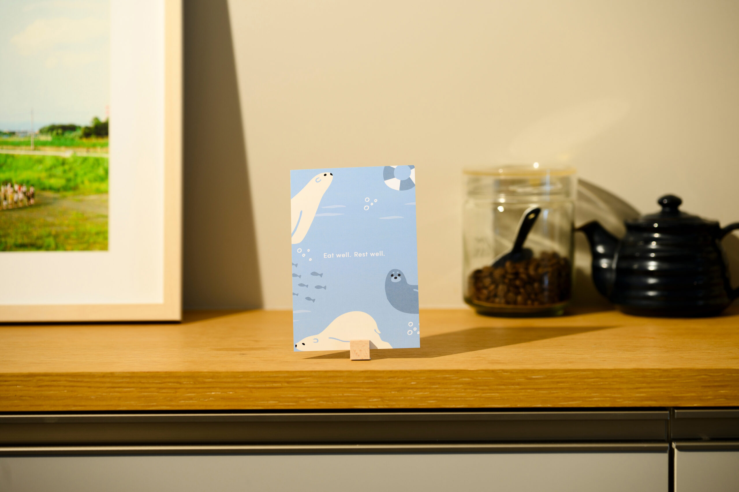 北海道の暮らしを北欧テイストのポストカードでお届け。 ポストカード(シロクマとアザラシ)