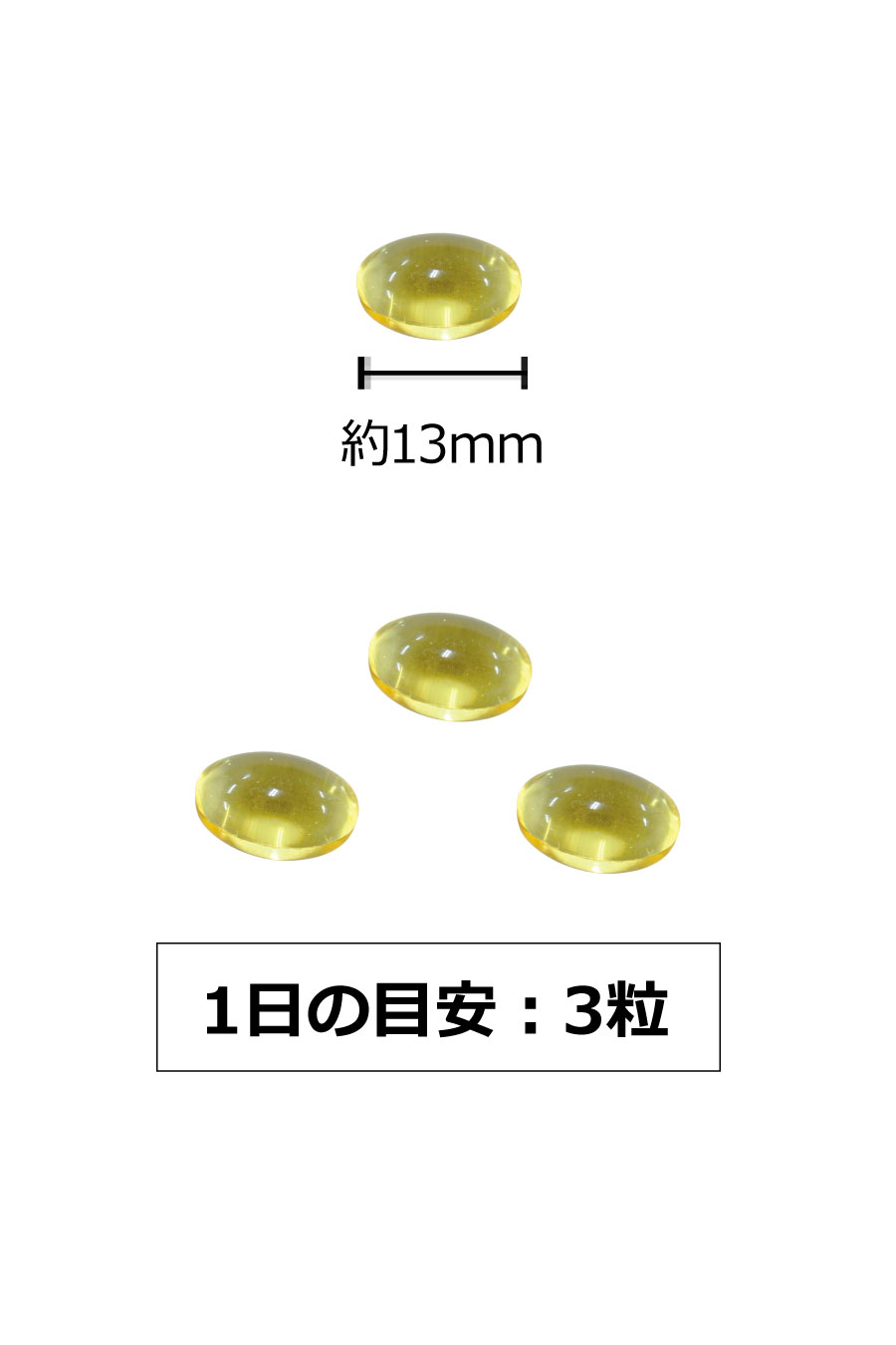 ■主な成分(3粒あたり) DHA:270mg、EPA:31.8mg、亜麻仁油(α-リノレン酸含有):174mg、エゴマ油(α-リノレン酸含有):39mg、ビタミンE:1.89mg