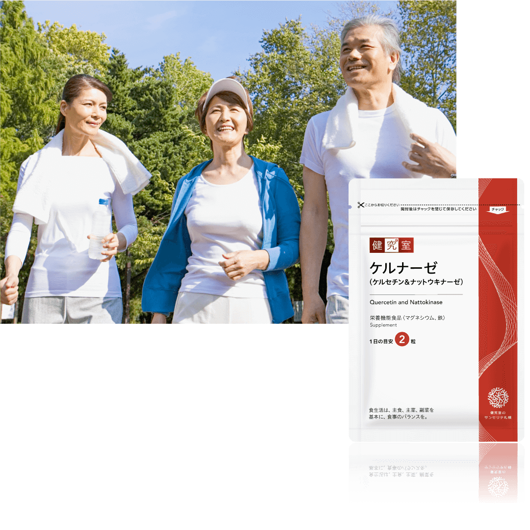 サラサラ2大成分の高吸収型ケルセチンとナットウキナーゼのダブル配合!生活習慣対策の決定版 ケルナーゼ(ケルセチン&ナットウキナーゼ)